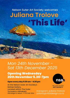 I am a full time artist living near Nelson. I love thick oil paint and colour. The point of painting is to give joy to the viewer, evoking fond memories, capturing a moment in time or adding a splash of colour to the wall.